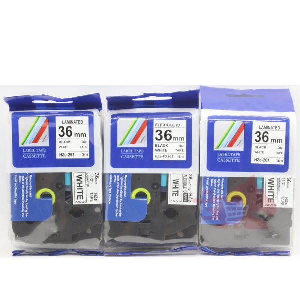 Combo 3 nhãn in Hze-261, khổ rộng 36mm* dài 8m, chữ đen nền trắng
