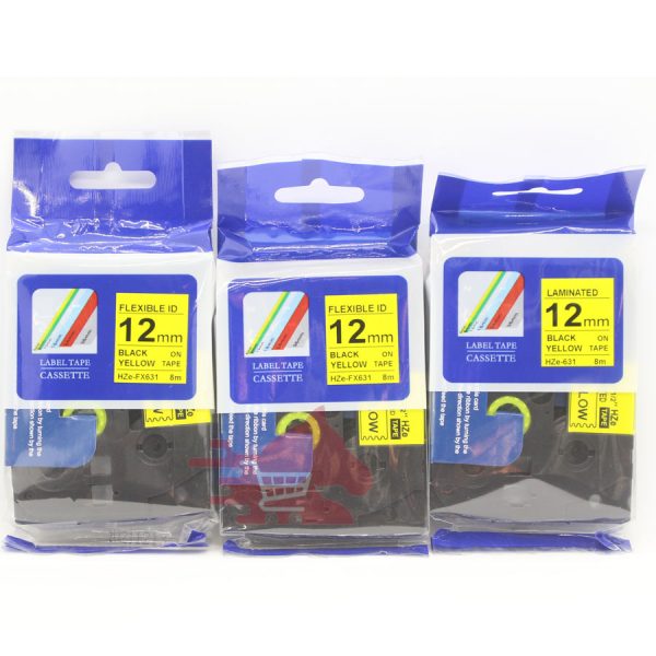 Combo 3 nhãn in hze-631, khổ rộng 12mm* dài 8m, chữ đen nền vàng