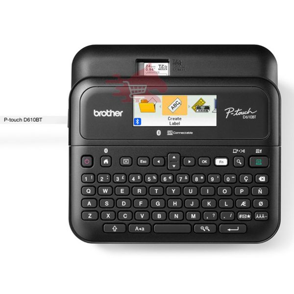 Máy in nhãn Brother PT-D610BT kết nối máy tính và Bluetooth, khổ nhãn tối đa 24mm.