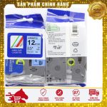 Nhãn in PZE-531, Khổ rộng 12mm dài 8m, chữ đen nền xanh dương (Black on blue), nhãn đa lớp, bám dính cao
