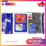 Nhãn in PZE-FX441, Khổ rộng 18mm, chữ đen nền đỏ ( Black on red), nhãn đa lớp, bám dính cao, siêu dẻo